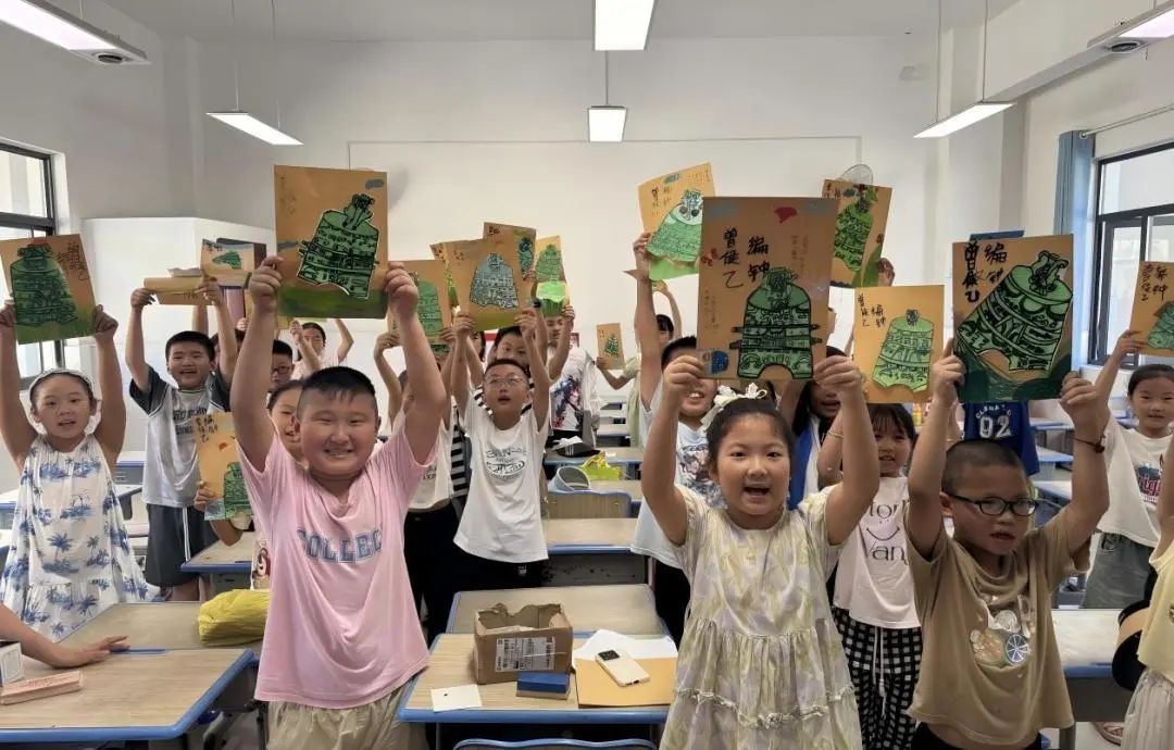 美术课堂宛如缤纷的调色盘,每个班级各展所长。小学的教室内,1班小朋友用画笔赋予曾侯乙编钟童趣纹样,2班折出朵朵 “小红花” 绽放温暖,3班用粘土捏塑出奇幻星球,4班以线条重现青铜纹饰的历史韵律。孩子们用稚嫩的双手创造着充满想象力的作品,课堂上洋溢着活泼的笑语与创意的火花。