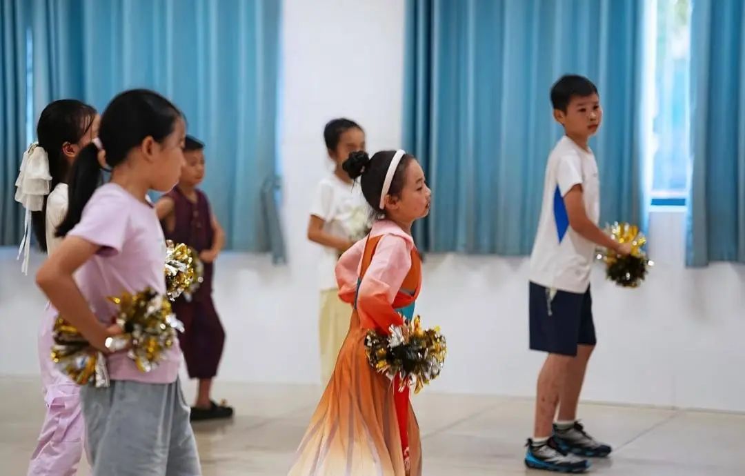 在小学舞蹈房里,老师耐心指导着小学员们练习基本功。孩子们一丝不苟地跟着老师的示范,汗水浸湿了衣衫,却浇不灭他们对舞蹈的热爱。《加油!Amigo》的旋律响起,老师随着节奏为孩子们喊着节拍,鼓励他们尽情展现自己。孩子们化身活力四射的小精灵,每一次跳跃、每一个转身都迸发着自信的光芒,为梦想的舞台全力积蓄能量。