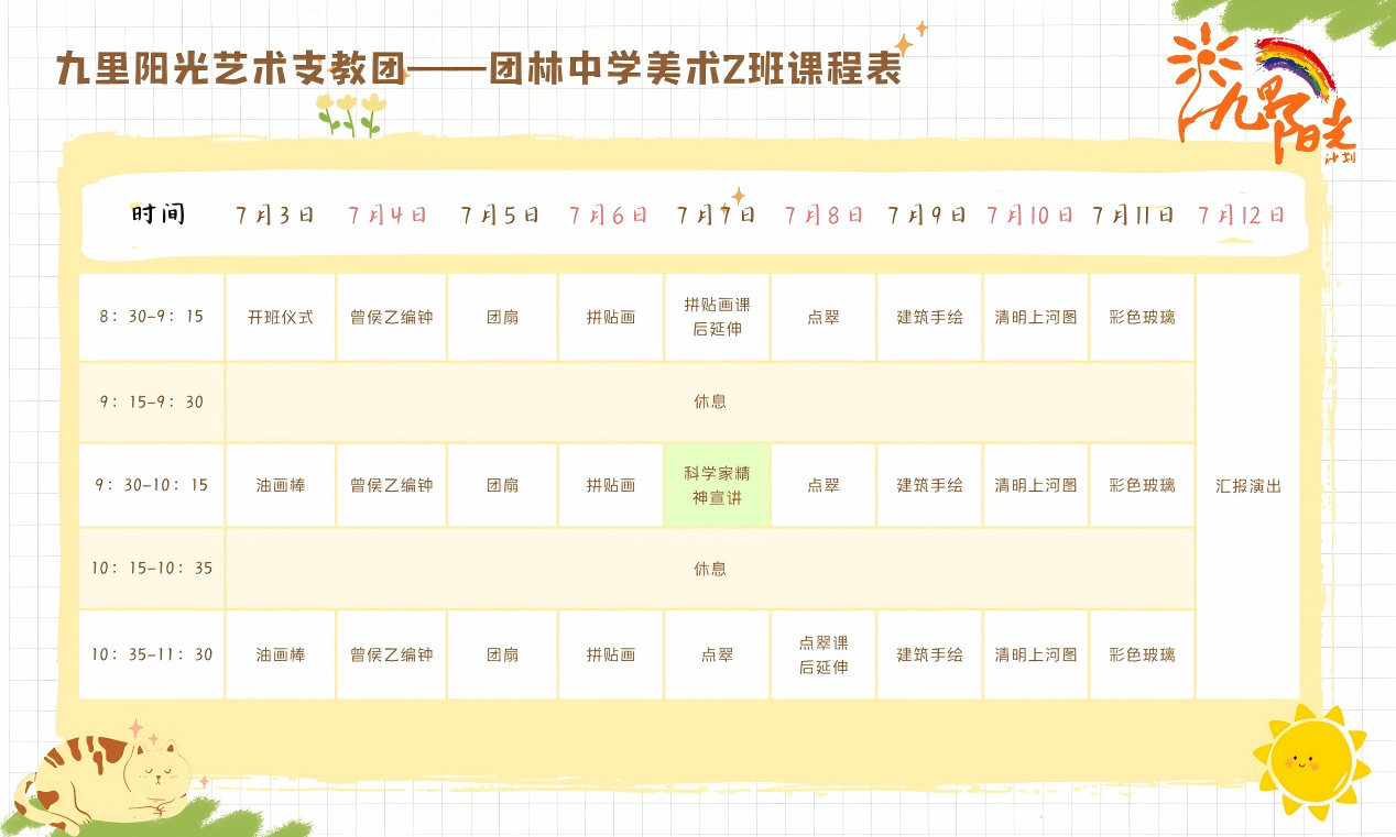 七月流金,掇刀生辉。为深入贯彻习近平文化思想,扎实推进教育强国建设,落实教育部全面实施学校美育浸润行动的号召,米乐mile官方网站米乐mile官方网站“九里阳光”艺术支教团教学有序进行。继随县美育之花盛放,支教团怀揣满腔热忱,于7月3日在荆门市掇刀区团林中小学继续艺术支教之旅,致力将优质美育资源注入乡村教育沃土,为孩子们打开一扇通往艺术世界的大门。