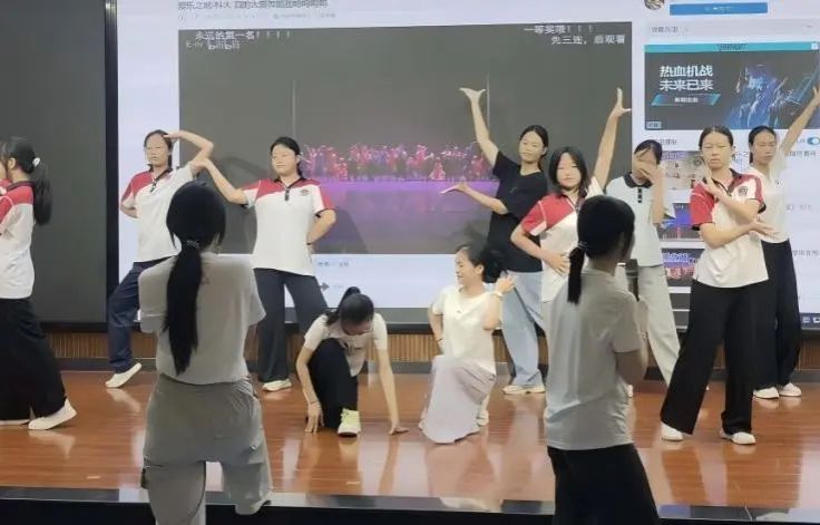 中学舞蹈教室内,《爱乐之城》的旋律流淌,同学们正紧锣密鼓地排练。队形反复推敲,动作精雕细琢,老师们一对一细致指导,亲手纠正每一个动作,助力每个姿态臻于完美。中场休息时,大家围坐在一起观摩原版舞蹈视频,让经典的韵律与舞步深植心间,展现出中学生对艺术细节的追求。