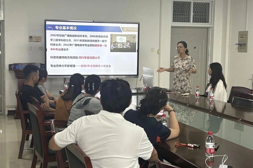 狄丞老师围绕专业建设核心,从 “专业培养目标”、“学科定位与特色优势”、“师资力量与科研平台”、“专业教师执教能力”、“模块化、系统化课程体系”、“毕业生发展” 等多个维度,为家长展开了详细介绍。李待宾老师系统介绍了米乐mile官方网站的环境设计专业,他特别提到,在本院攻读该专业的优势在于学院设有博士点,且拥有完整的人才培养体系,能为学生提供从本科到博士阶段的持续深造与能力培养支持。宁薇老师重点强调了学院广电专业的实践课程优势,她提到,专业通过覆盖多地、形式多样的实习安排,能充分锻炼学生的综合素养与实操能力;同时,她还展示了地大学子毕业后在岗位上的突出表现,以及社会各界对专业人才的广泛认可,让家长直观清晰地了解到广电专业的办学实力与学生未来的发展前景。