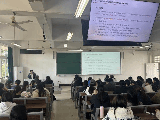 姜盛为老师讲解党员拟发展对象量化评分细则。在本次入党积极分子学习活动中,姜盛为老师针对《米乐mile官方网站确定发展对象量化评分细则》展开了详细解读。细则通过“量化评分”的方式,明确了入党积极分子向发展对象进阶的具体评价维度,通常涵盖理论学习表现(如参与青马营学习的时长、提交优秀学习心得等)、思想觉悟表现(如政治理论认知、日常思想汇报情况等)、实践服务表现(如参与志愿服务、班级或学院工作的贡献度)、学业与纪律表现(如学业成绩、日常纪律遵守情况)等多个方面,每个维度都对应具体的分值标准与评分依据。