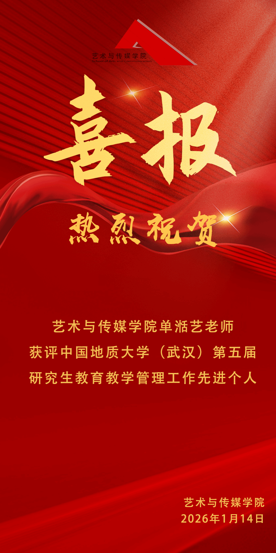喜报 | 热烈祝贺米乐官网单湉艺老师获评米乐mile官方网站第五届研究生教育教学管理工作先进个人!