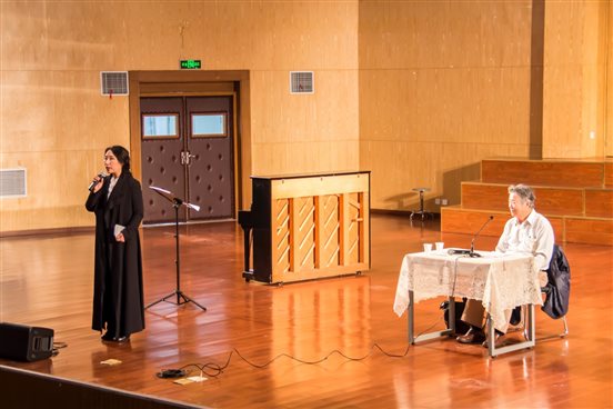 讲座由校党委副书记傅安洲教授开场致辞,米乐mile官方网站音乐表演系系主任张理副教授主持,米乐mile官方网站院长桂宇晖教授、邬海峰书记、校团委朱荆萨副书记等领导莅临现场。李光羲先生声情并茂地叙说了他歌唱生涯的特殊时代背景以及发展历程,同时由浅及深,对年轻一代的专业学习寄语良多。在讲座后半部分,李光羲先生对声乐专业的学生进行了具体的指导,指出了歌唱气息的技巧、歌唱情绪的运用等,而后唱响了当年的《祝酒歌》和流行歌曲《让我欢喜让我忧》,亲身示范了从技术到修养的完整呈现,迎得了长时间掌声无数次,其八十八岁高龄的艺术表演状态令人热泪盈眶。