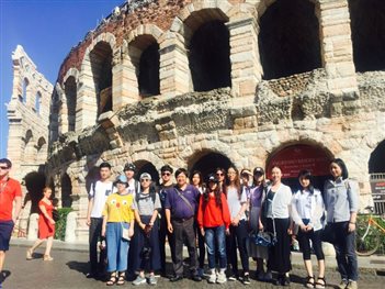 而不远处的维罗纳露天剧场中正在上演著名歌剧《阿依达》,在参观露天剧场后我们结束了今天的行程。虽然由于倒时差大家稍有疲惫,但面对米兰这座美丽的城市我们仍然为之激动不已,而明日的威尼斯之旅更令人心生期待!