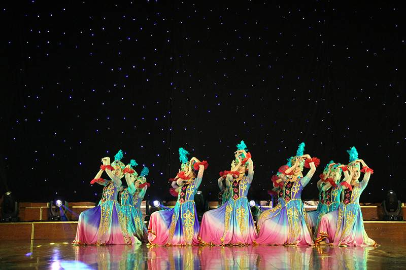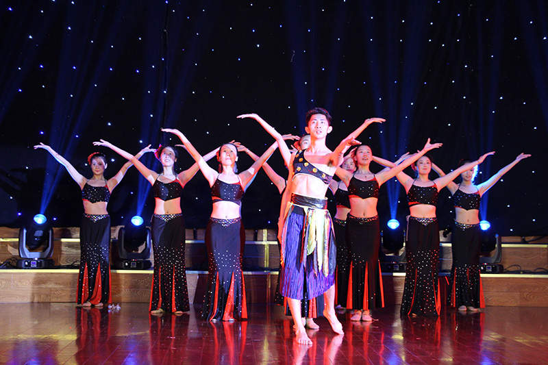 开场一曲《万花谷》将古韵天成演绎的淋漓尽致,展现了东方古典艺术的刚柔之美;独舞《乡愁无边》《卓玛》《傣家小妹》更是展现民族民间舞蹈魅力的同时,更是诠释了四年来舞蹈班的同学们对专业四年积累的点滴;《桃夭》是12级舞蹈班的代表佳作,一个个桃花仙子,含笑舞袖,洋溢着诗意诗情;胶州秧歌《梦里寻他千百度》、蒙古族舞蹈《月狐吟》、傣族舞蹈《灵》与维吾尔族舞蹈《旋旋旋》是全晚的四大亮点,情绪由浅入深,层层递进,音乐时而柔缓、时而欢快,将汉族女孩的甜美、蒙族姑娘的妩媚、傣族少女的柔情和维族女孩的大方呈现得个性鲜明、舞姿伉俪,犹如畅游在中华多元民族文化的大地上;双人舞《同窗》为我们勾勒了校园生活中最青涩的那一抹柠檬味道,令人回味而向往。