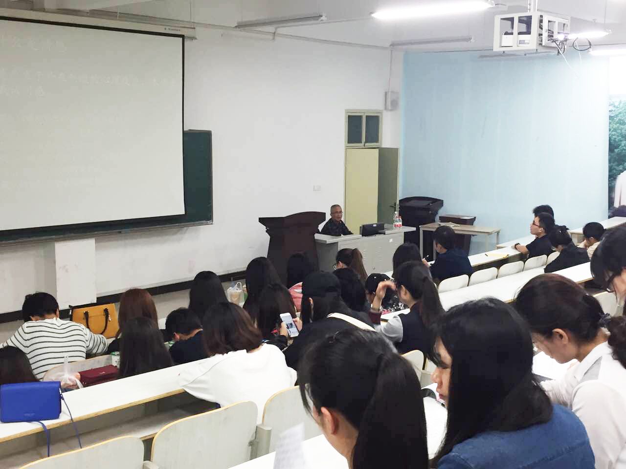 讲座之前,余老师展示了他最近刚出版的一本书——《说话与倾听》。这本书依托中国文化背景,多角度探讨了传播行为的三个核心要素:说话、语言和倾听。讲座中,余老师首先解析了什么是情感,他指出情感是产生于外在刺激的心理反应,所以情感本质上是一种自我认同感。同时,情感也是一种生理现象,比如不同年龄段的人情感上也有所差异。接着,余老师阐释了情感与艺术欣赏的关系,他强调情感体验是个体不可或缺的精神需要、是普遍的行为动机和动力、也是群体凝聚力的重要源泉,并且充沛的情感是成功人士重要的心理特征。而艺术欣赏是情感体验的重要源泉,因此,在一定程度上,艺术欣赏刺激了情感的产生。最后,余老师从表达、发现和创造三个层面分析了艺术创作的过程,并以自己赏花时感叹雍容华贵、多姿多彩的牡丹,在诗句中创造性地将花比作美人的切身经历,向同学们生动形象地阐释了情感与艺术创作的关系。
