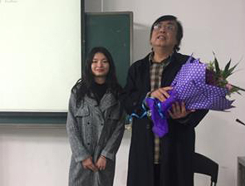 学生代表向院长献花致敬