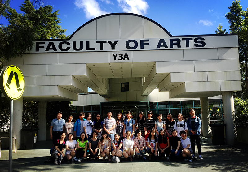 (图为全体人员在麦考瑞大学艺术大楼前的合影)
