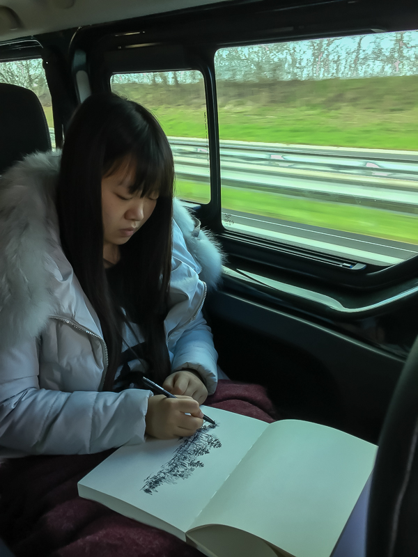 访学团沿10号公路主干道一路向北,全程大约600公里,途径各种特色的酒庄及部分世界文化遗产,跨越加龙河大桥,一路兴致勃勃。中午过后,天色渐暗,随后一路阵雨瓢泼,但访学团前行的步伐没有受大雨一丁点影响。由于行程较长,访学团成员在车上度过了一天的大部分时间。