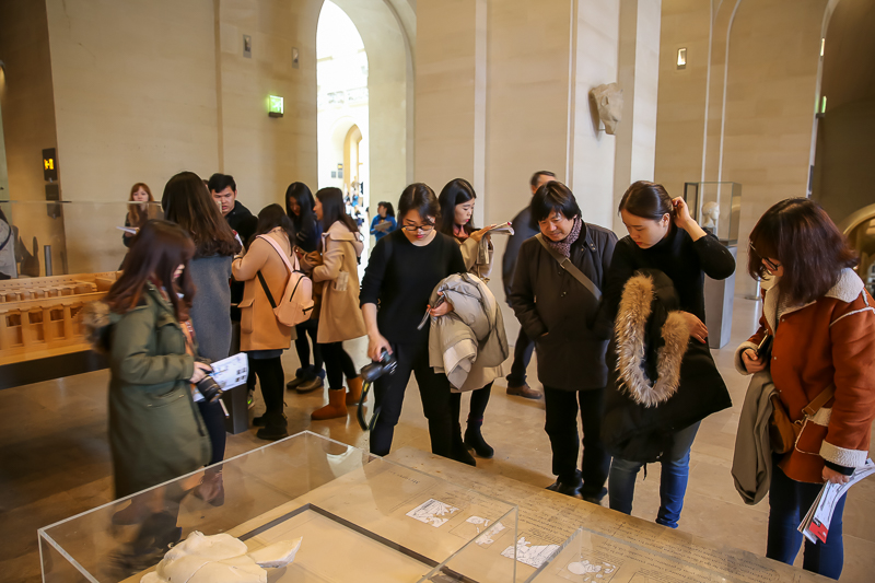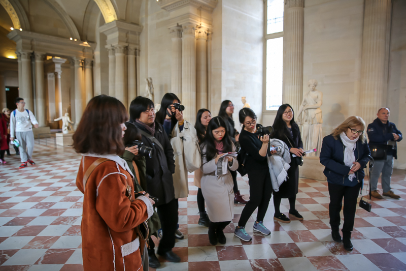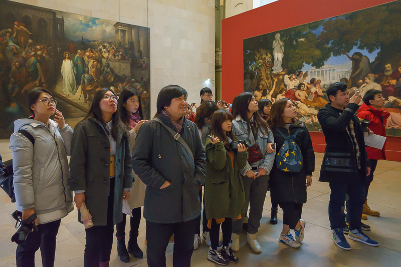 上午10点50分,访学团在马林老师的带领下正式进入卢浮宫博物馆,并计划从雕塑馆开始,经文艺复兴绘画展厅,进入浪漫主义绘画馆,最后行至古典主义绘画展厅进行参观。