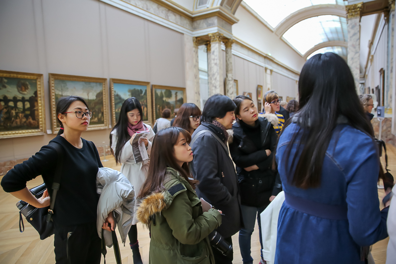 随后,马林老师带领访学团继续观赏卢浮宫内其他艺术作品,如:油画《自由领导人民》、《拿破仑加冕》、《马拉之死》等,并对部分优秀作品进行了细致分析,马老师的讲解十分详尽,访学团成员亦纷纷表示:“此次卢浮宫之行,收获颇丰”。