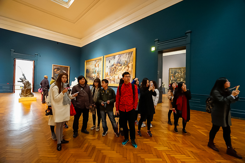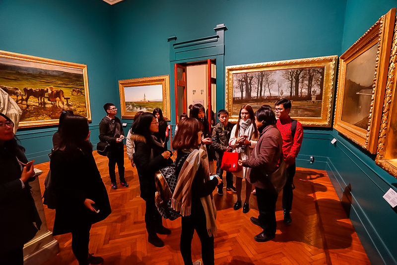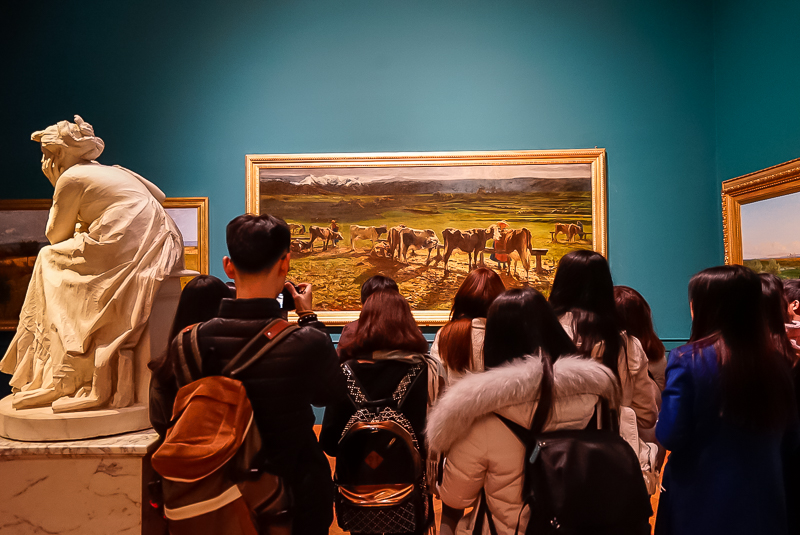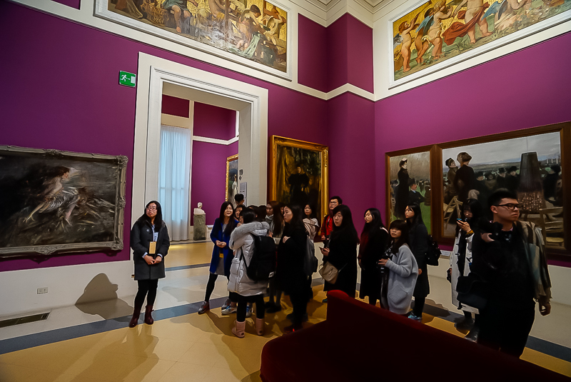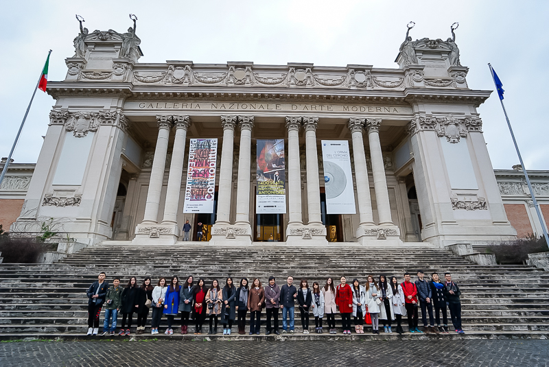 下午,马老师带领访学团直奔罗马国家现代美术馆。马老师介绍到,罗马国家现代美术馆是意大利收藏现代美术作品作丰富的美术馆,并带领访学团逐一参观了19~20世纪新古典主义、马基亚伊奥利画派、未来主义、形而上画派、抽象主义等不同风格流派的绘画作品,并重点分析不同时期大师作品的特色。