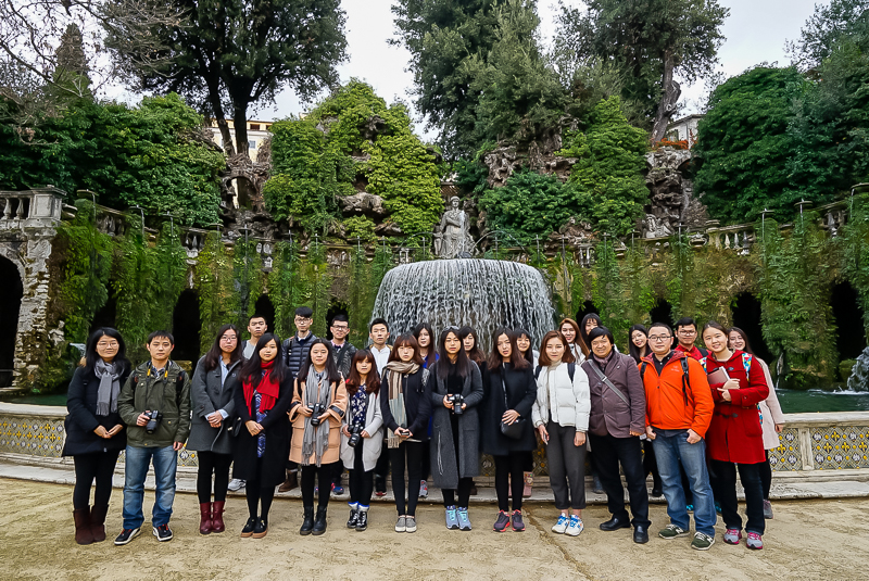 经过一晚的休整,罗马当地时间1月31日9点,米乐官网设计学科本科生访学团在马林老师的带领下,前往罗马东郊的埃斯特庄园(Villa d’Este)。