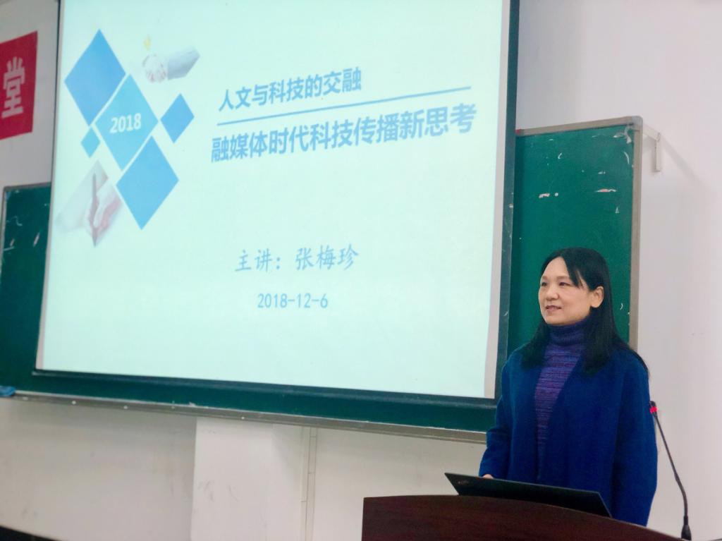 2018年12月6日晚,一场主题为《人文与科技的交融——融媒体时代科技传播新思考》的讲座在米乐mile官方网站1104教室举行,主讲人为米乐官网张梅珍教授。本次讲座系“艺术与传媒系列讲座”第八讲,副院长曾健友主持,学院全体2018级研究生参加。