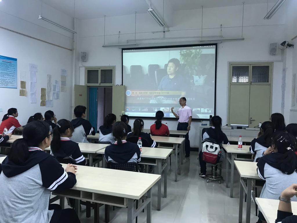 最后,在1106教室,方浩老师为同学们展示了他和团队所制作的优秀科教实践作品。视频通过恢弘的镜头及精良的特效,普及科学知识并传递科学精神。方老师为同学们介绍了学院的基本情况和办学理念,教导同学们养成良好的学习、生活习惯,树立正确的三观,期待同学们有机会就读地大米乐mile官方网站。