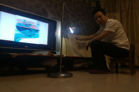 视觉与媒体设计系的桂宇晖教授,将家里客厅变成课堂“直播间”,晚上备课,白天讲课。为达到更好的视觉效果,在武汉严寒的冬天里穿着短袖为学生们授课。
