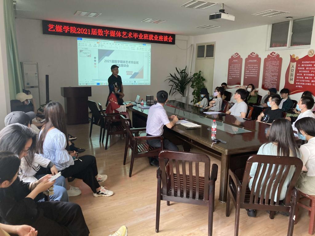 5月28日下午,米乐官网党委副书记吴仁喜老师主持召开2017级数字媒体艺术毕业班就业座谈会,2009届院友、武汉超方体信息技术有限公司总经理刘士超受邀参加座谈会,2017级数字媒体艺术毕业班约40名毕业生参与。