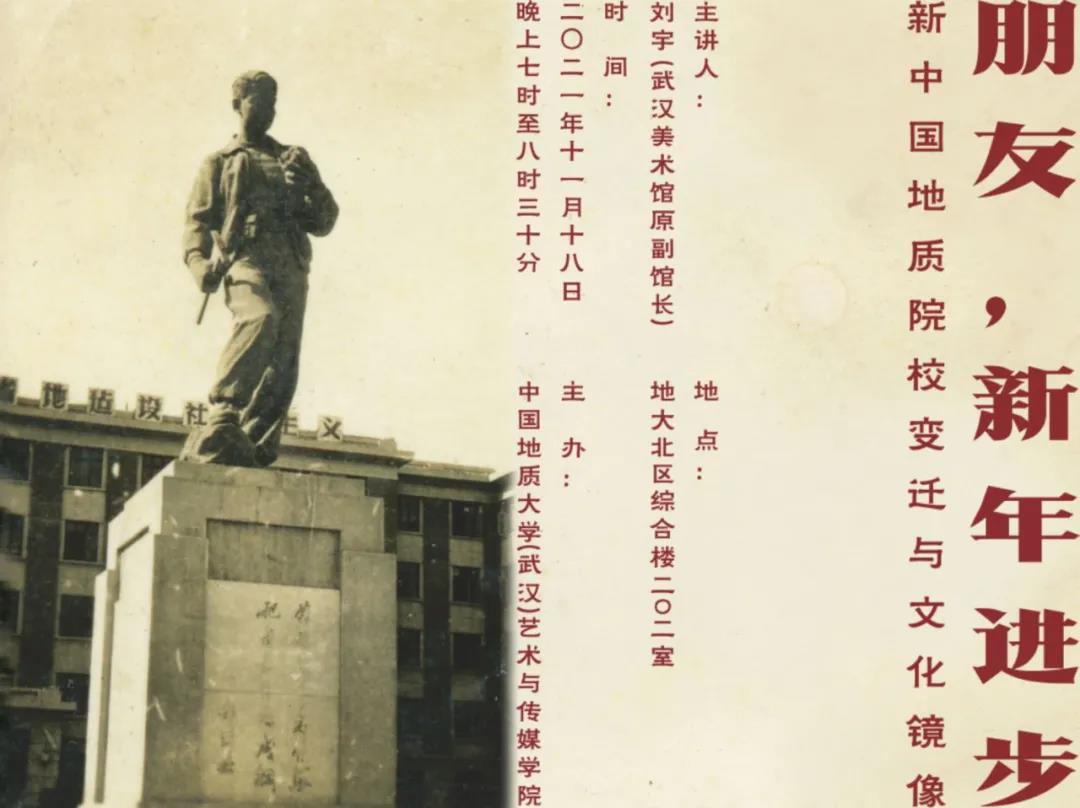 为开阔学生视野,强化校史文化的传承和发展,米乐mile官方网站艺术传媒学院于2021年11月18日19时于米乐mile官方网站北区北综楼202室举办了“朋友,新年进步——新中国地质院校变迁与文化镜像”主题讲座。讲座由米乐mile官方网站副院长彭静老师开场主持,介绍讲座主讲人、致辞并宣布讲座开始。本次讲座嘉宾是武汉美术馆原副馆长刘宇老师主讲,米乐mile官方网站陈华文老师作讲座总结。