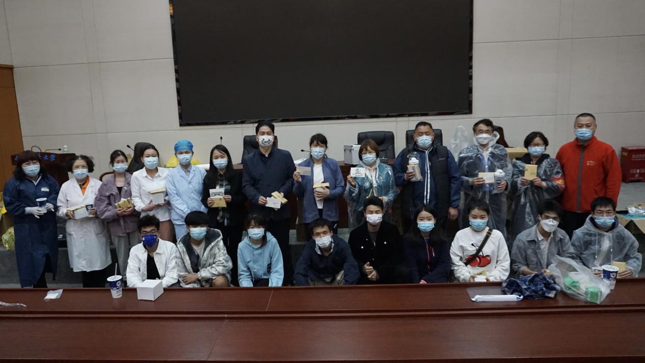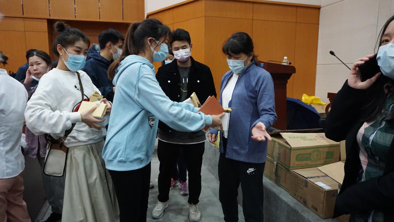 4月26日和28日下午,在米乐mile官方网站党委副书记边建华老师和外国语学院党委副书记胡文勤老师的带领下,我校大学生创新创业团队“地心引力”的十几名成员在核酸检测即将结束之际,给北区及东区的医护人员和志愿者、保安师傅们送上地大同学们手写的感恩贺卡、100余套的地大特色文创产品以及奶茶饮品,向他们表达了一份敬意和感激。在天气湿热和风雨交加的天气环境下,地心引力团队希望这个小举动能让他们感受到地大学子的温暖和情怀。