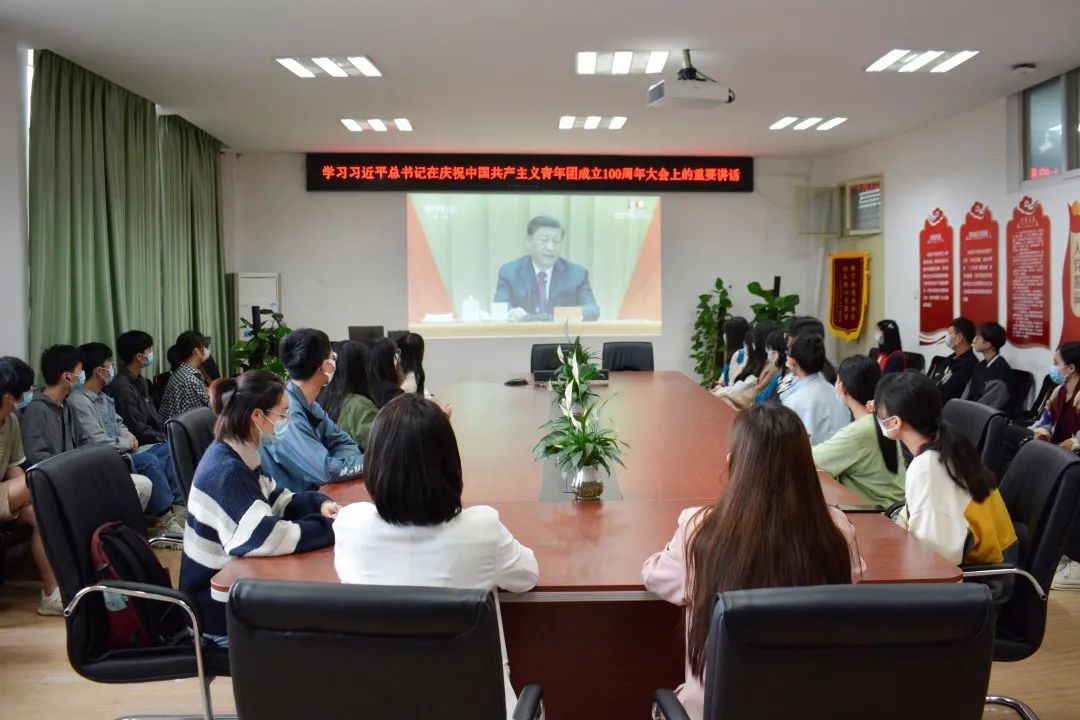 2022年5月10日上午,庆祝中国共产主义青年团成立100周年大会在人民大会堂隆重举行。中共中央总书记、国家主席、中央军委主席习近平出席大会并发表重要讲话。米乐mile官方网站党委书记郭秀蓉、党委副书记边建华、辅导员陈习良、辅导员曾戈晖、兼职辅导员、学生会、研究生会、党建办学生骨干共同在艺媒楼1209会议室观看庆祝中国共产主义青年团成立100周年大会直播。