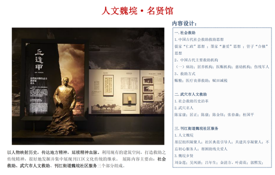 魏垸小区以“崇仁重教”为名,重点打造党群服务中心,以文化为筑基着力打造“人文魏垸”,从展陈和科普的角度来讲述刊江街道历史故事。