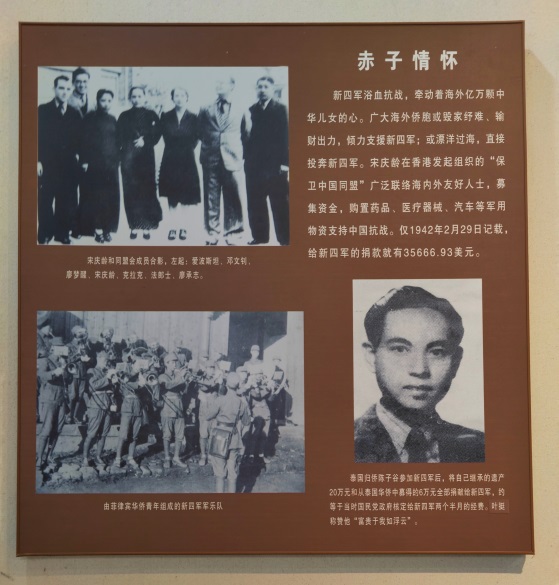 安徽泾县新四军军部旧址纪念馆内关于陈子谷同志当年担任新四军政治部敌工部一科科长的展板照(左)