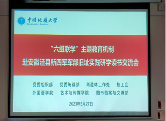 遵循学校主题教育“学思想、强党性、重实践、建新功”的目标要求,学校党委组织部、党委统战部、工会、离退休工作处、图书档案与文博部、外国语学院、米乐mile官方网站等六个党委理论学习中心组联合组建原著集中学习读书班(以下简称“六组联学”读书班),于2023年5月27日在新四军军部旧址所在地安徽泾县云岭镇认真召开了读书交流会。校工会常务副主席郭秀蓉、图书档案与文博党委书记帅斌、离退休工作党委书记李门楼、图书档案与文博部长刘先国分别依次分享了《习近平著作选读》等原著的学习心得,并作了领学报告,扎扎实实地讲了一堂生动的主题教育专题党课。