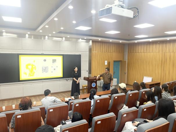 讲座开始之前,由学院副院长杨喆简单介绍主讲人:朱求真老师在学术方面有自己独到的见解,在插画师同企业协作、插画企业活动等方面有大量的工作经验,有着丰富的一手数据和资料。