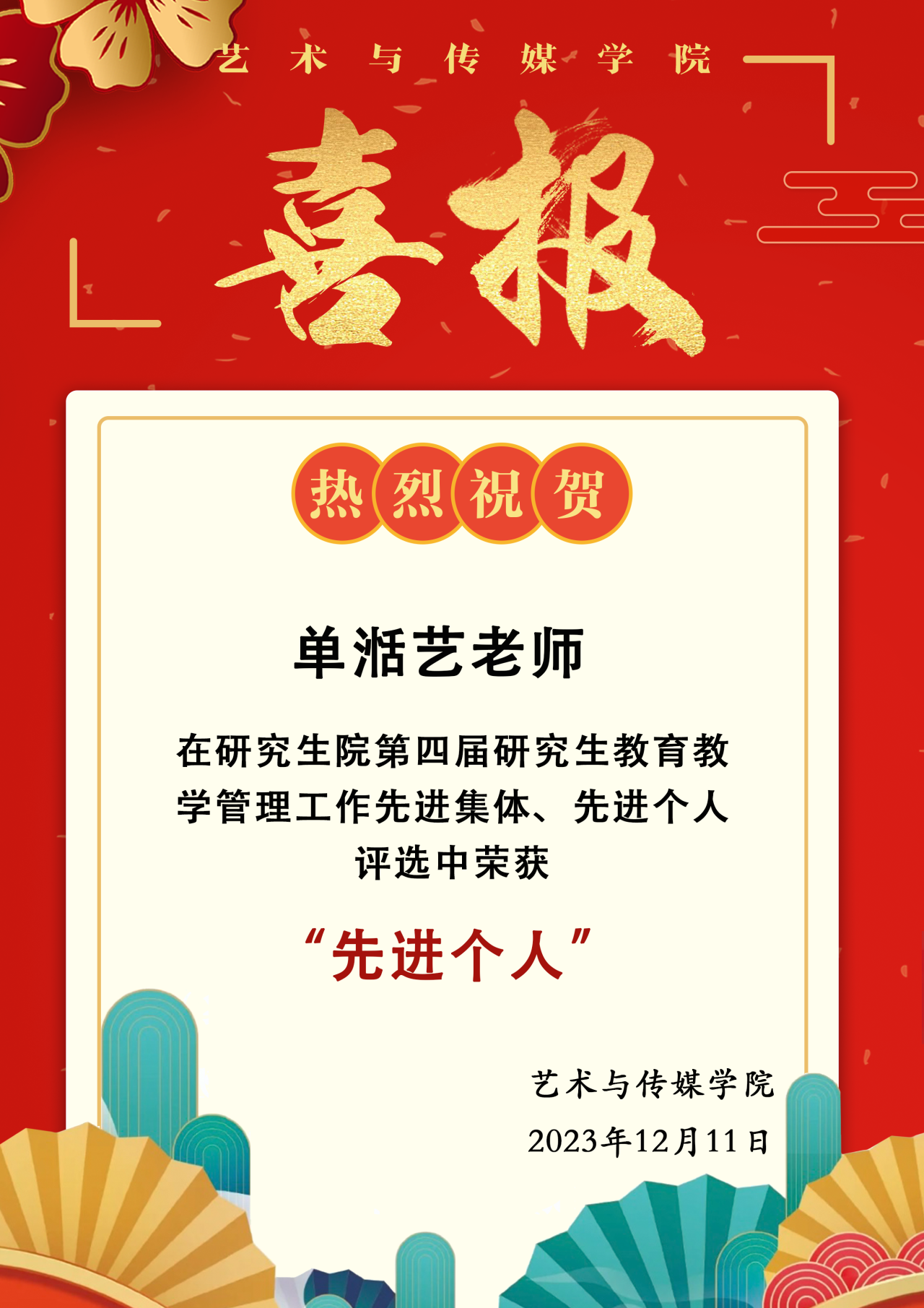 喜报 | 热烈祝贺米乐官网单湉艺老师荣获研究生院第四届研究生教育教学管理工作“先进个人”