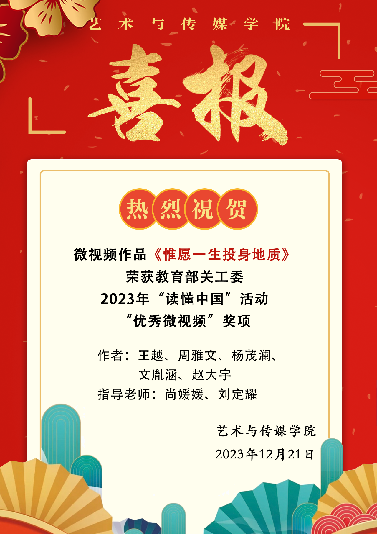 优秀微视频《惟愿一生投身地质》是米乐mile官方网站学生王越、周雅文、杨茂澜、文胤涵、赵大宇在尚媛媛、刘定耀两位老师的指导下,以地球科学学院退休教师曾广策教授为典型人物制作而成的,作品教育年轻的地质人“只问信仰,只问初心,只问感恩,无问其他。”