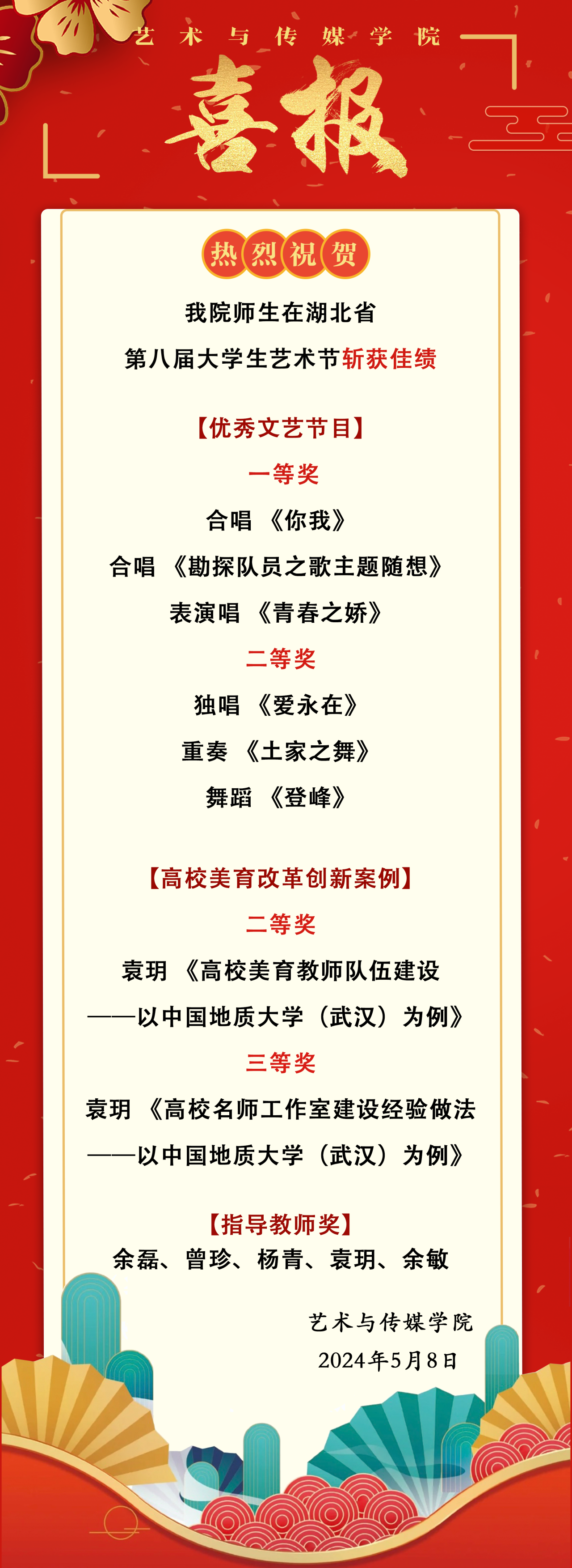 米乐官网多部作品斩获湖北省第八届大学生艺术节多个奖项,不仅是对专业教学成果的肯定,更是学校美育工作在省内的一次成功展示。未来,米乐mile官方网站将继续坚持“以美育人、以文化人”,围绕党和国家发展的时代主题,在习近平文化思想的指引下,将美育实践与学科建设相结合,让音乐之美浸润校园!