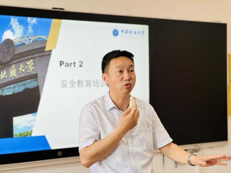 接着,安全保卫部副部长彭冠军进行安全教育培训,强调当前国内外安全形势严峻,需加强校园安全管理。他特别指出,在消防安全、交通安全、网络诈骗和网络舆情等方面需做好应急措施。呼吁大家共同努力,维护学校、学院的安全稳定。