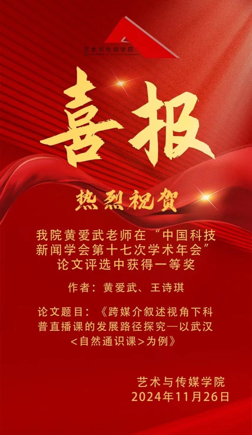 喜报 | 热烈祝贺米乐官网黄爱武老师在“中国科技新闻学会第十七次学术年会”论文评选中获得一等奖