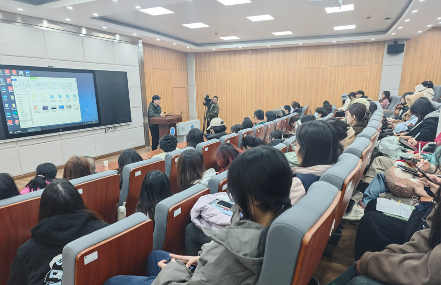 解承强老师还与在座师生分享他在音乐创作方面的心得体会,尤其是在创作《信天游》时的动人故事。他讲述了如何将民族音乐的元素与世界音乐的潮流相结合,创造出既有民族特色又具有国际视野的音乐作品。接着,解老师为在座师生播放了采风收集到的音乐与经典作品,全场陶醉在民族风味的乐曲中。