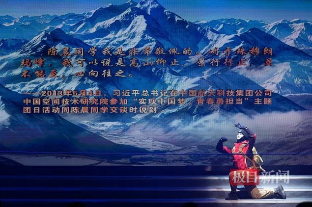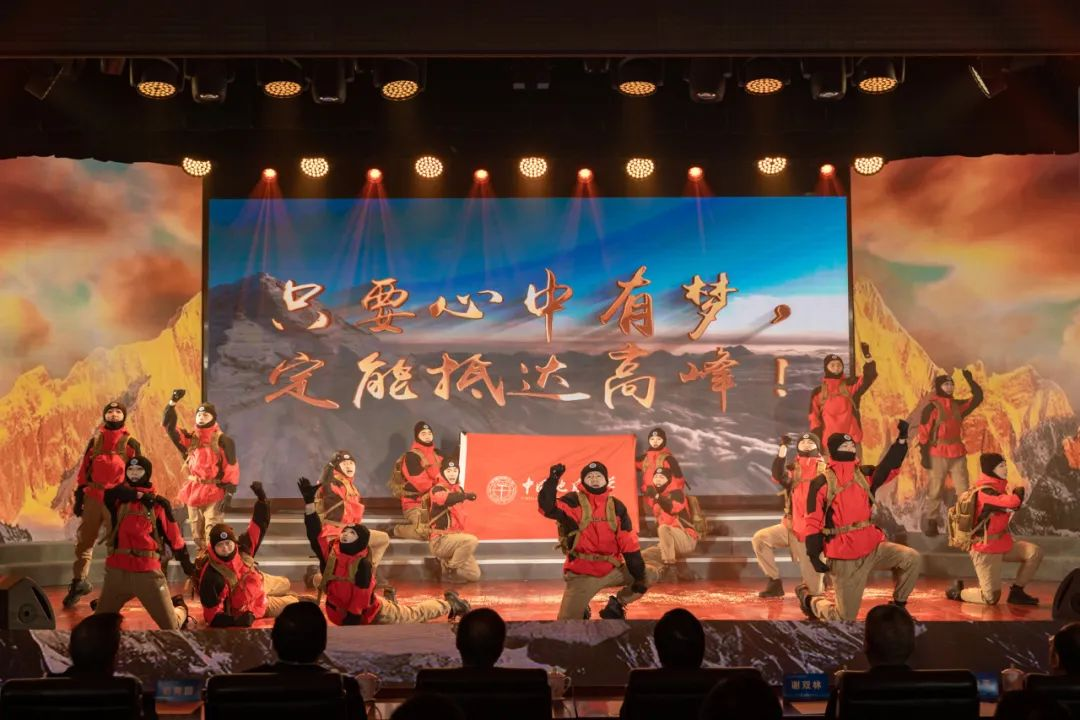 灯光渐亮,一幅壮丽的雪山画卷在舞台上徐徐展开。米乐mile官方网站的师生们以舞蹈《攀登》,生动再现了全国首位登顶珠峰的在校大学生陈晨的传奇经历。每一个灵活的舞步、每一个坚定的神情,都在诉说着人类挑战生命极限的勇气与决心,彰显着地大人征服自然之巅的壮志豪情。展现了地大师生迎难而上、向上攀登的精神。
