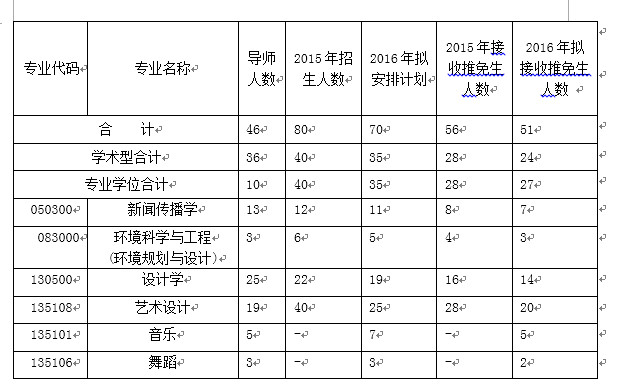 2016年米乐官网在新闻传播学、设计学、环境规划与设计3个一级学科学术学位和艺术设计、音乐、舞蹈(MFA)专业学位类型接收推免生51人,学制3年。具体见下表。