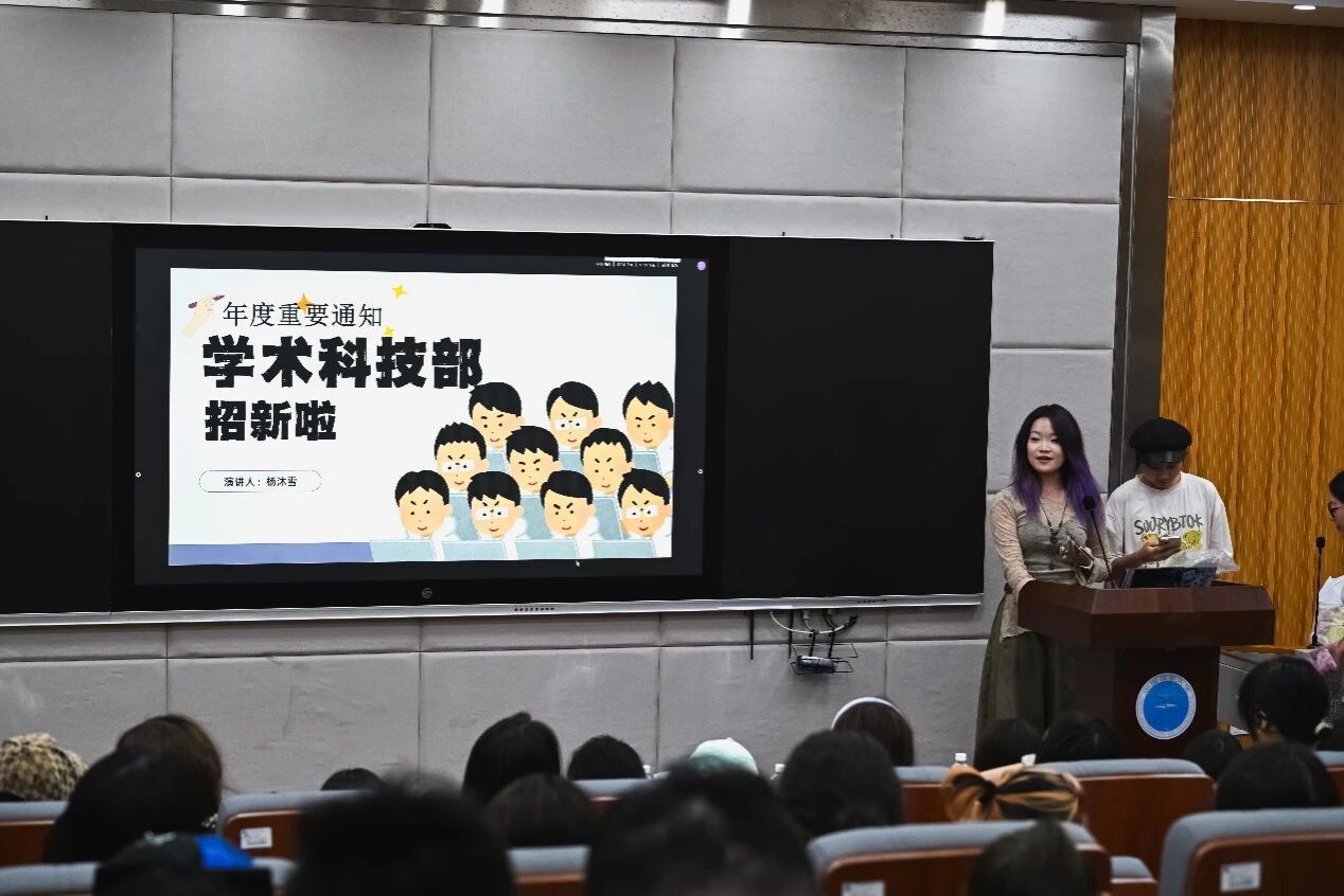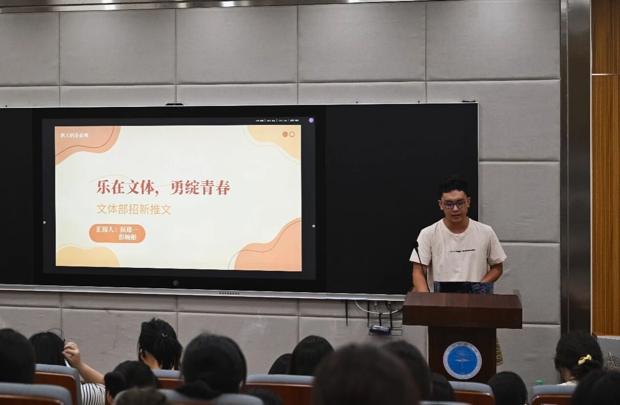 紧接着由学生会和分团委下属的各部门进行宣讲,部长们分别从人员介绍、部门概况和优势、工作属性及内容等方面进行讲解。