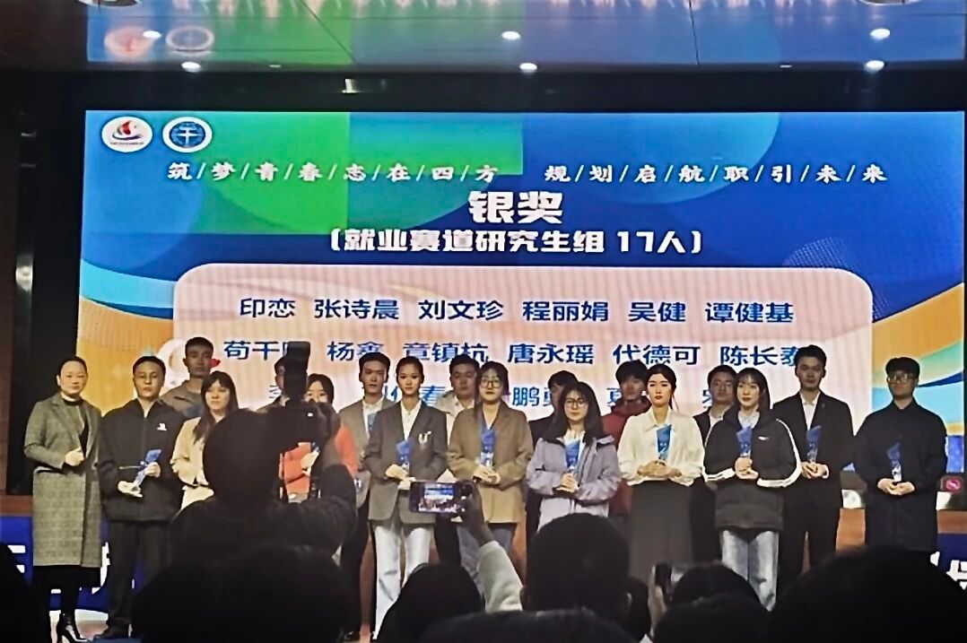 在本次比赛中,米乐mile官方网站的同学们表现出色,斩获多项荣誉。成长赛道方面,汤登峰荣获校级金奖,黄首诺、刘如钰、蒋昀容、陈佳璐、林胜男、卢盛欢、张杰、孙沛儿荣获校级铜奖;就业赛道方面,郭悦萱荣获本科生组校级银奖,吴健荣获研究生组校级银奖,凡玟萱、祝玉瑛、戴永溢、覃立有、刘冰洁、凤嗣梅、曹彬彬荣获校级铜奖。此外,米乐mile官方网站荣获“优秀组织单位”称号,学院专职辅导员单湉艺老师荣获“优秀指导老师”称号。