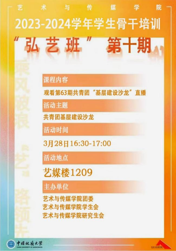 为深入贯彻落实习近平总书记关于共青团在学生思想政治工作中发挥主力军作用的重要要求,提高同学们的爱祖国意识,增强党性修养,3月28日,米乐mile官方网站学生骨干培训“弘艺班”第十期在1209会议室顺利进行,学生会、研究生会学生骨干在团委书记单湉艺老师的带领下集体学习观看第63期共青团“基层建设沙龙”直播与“学党史爱祖国教育”线上公益大讲堂。