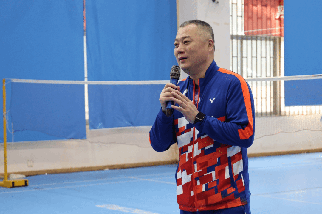 在比赛正式开始之前,边书记在发言中鼓励同学们积极参与,发扬体育精神,注意安全、赛出水平。随后,学院羽毛球队负责人莫语涵介绍了本次比赛的规则和流程,希望同学们享受运动带来的乐趣。