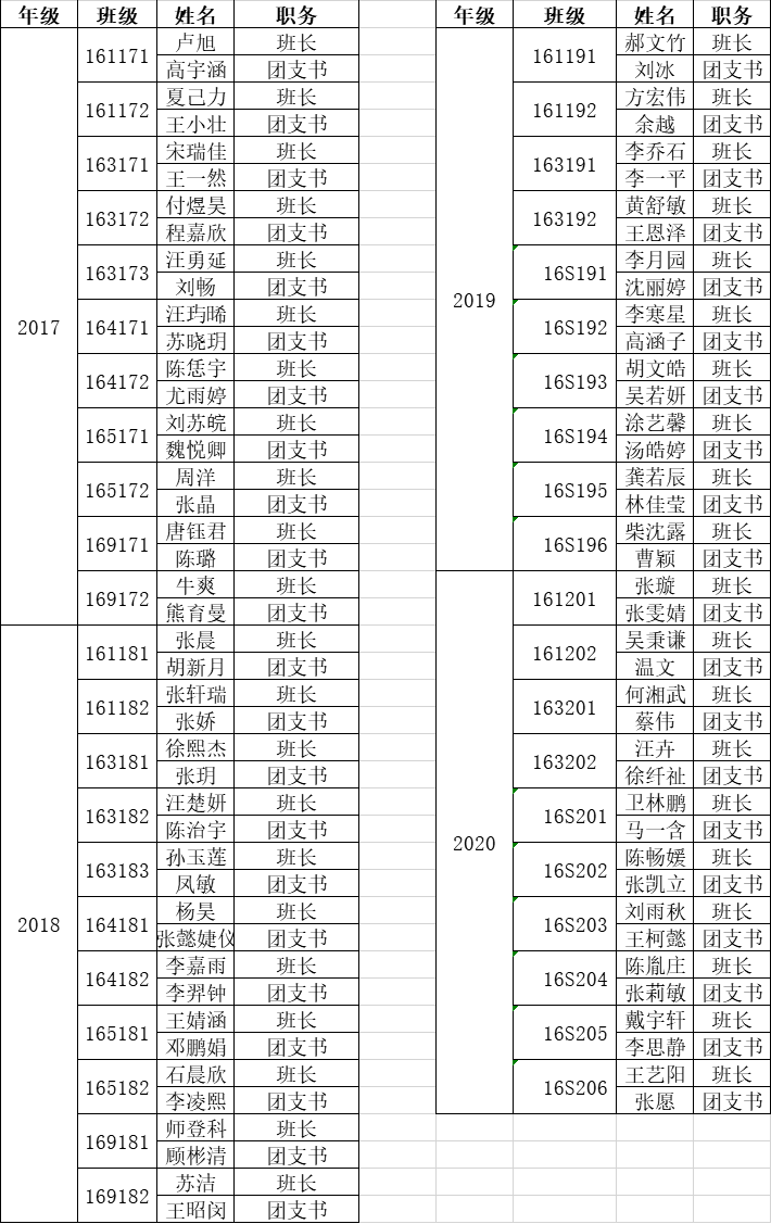 米乐mile官方网站2020-2021年度本科生班长团支书名单公示