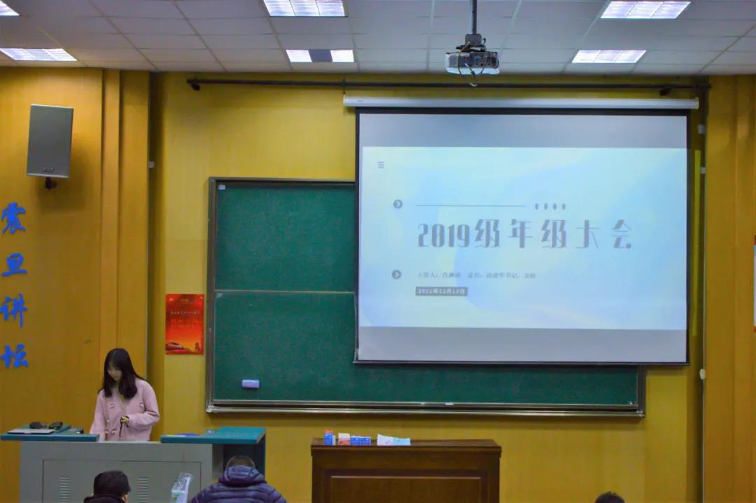 2021年12月23日晚上七点,米乐mile官方网站2019级年级大会于教三楼111准时召开,会议由2019级本科生兼职辅导员肖淋译主持,米乐mile官方网站党委副书记边建华、研究生会主席余跃及2019级全体学生参加。