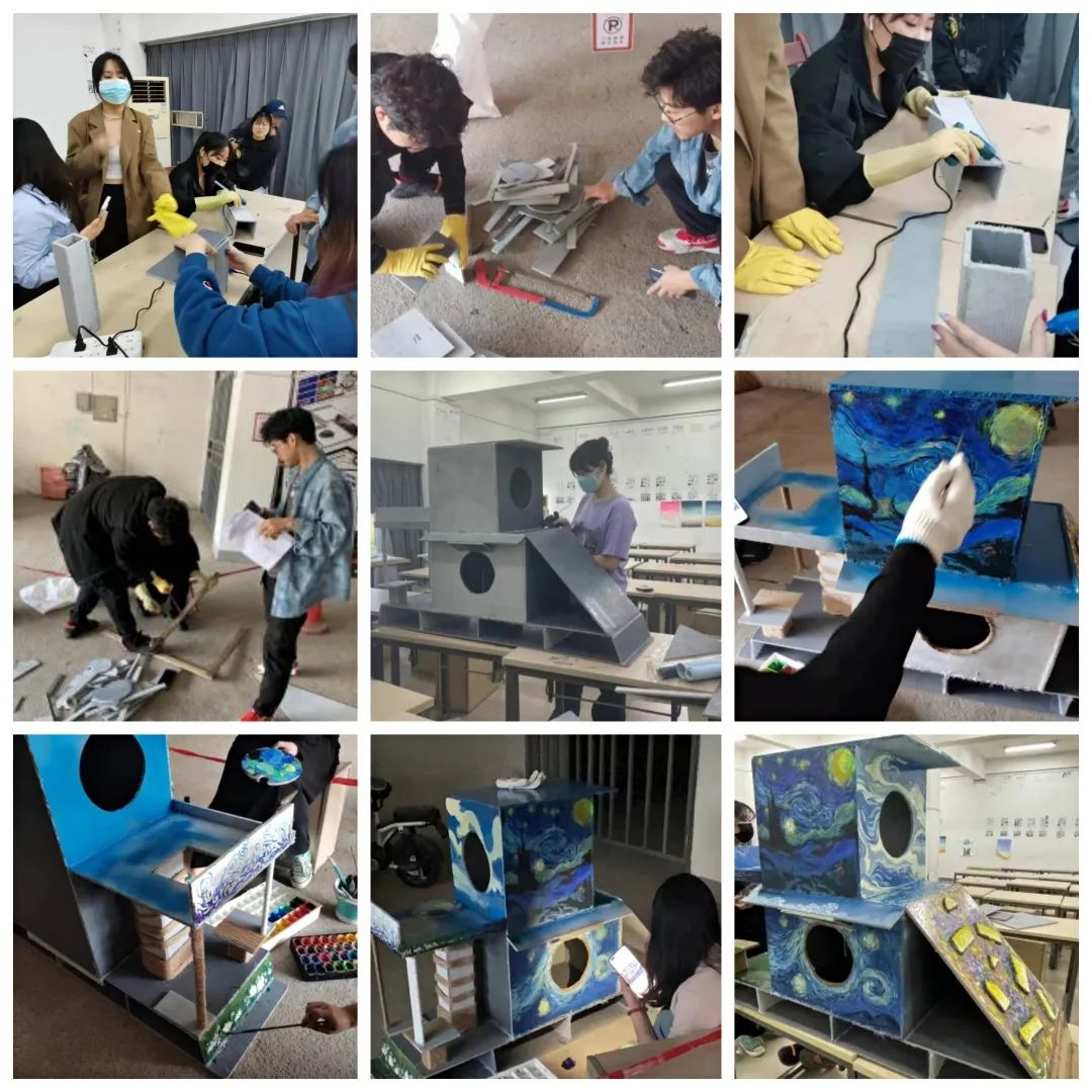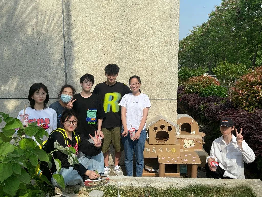 在整个建造猫舍的过程中,猫舍从无到有,从想法到图,再从图到落地开始搭建,到最后搭建完,老师的指引让我们很完整的参与上述的所有过程,让我们对建筑设计这门课有了初步的认识和入门。虽然中途会有波折和结果成品不是很完美,但面对亲手搭建的猫舍还是有些成就感的,更重要的是我们在小组在实践中学会了如何分工合作,学会了如何根据甲方(猫猫和人)更好的设计建造出猫舍......尤其是验收点评后,我们认识到自身实践成果的不足,懂得了以后如何更好的去建造更合适更完美的作品。