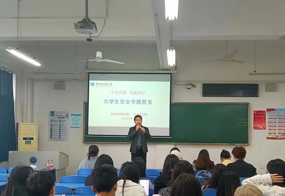 接下来由我校安全保卫部副部长彭冠军老师做主题为“大学生安全教育”的讲座,彭老师首先强调了安全教育在大学生活中的重要性并介绍了地大目前良好有序的治安环境,之后从四个方面展开:防火、防盗、防诈骗以及交通安全。彭老师通过一个个真实的案例、生动有趣的短视频提醒大家一定要注意个人财产安全,指出刷单,裸聊都是诈骗。讲座的最后,彭老师向大家展示了一则朗朗上口的《地大诈骗说》口诀提醒同学们务必在生活中提高防骗意识。