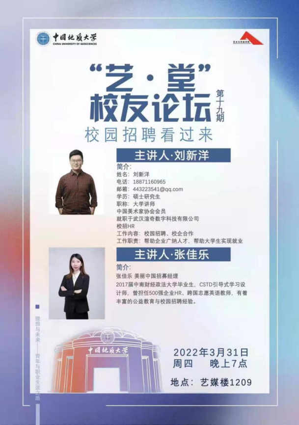 大学是教书育人的象牙塔,但求职就业不能闭门造车,学生需要深入行业一线了解工作氛围,需要获取行业资讯知晓工作重点。对此,米乐官网积极与二十多家用人单位开展联络,深耕艺·堂校友论坛平台,邀请企业HR、资深职员进行就业宣讲。本学期已成功举办4期,系列论坛主题包含考研复试分享、出国留学宣讲、辅导员备考座谈会、支教项目宣讲、游戏公司招聘等,为学生带来了有趣味、有启迪、有深度的课堂讲座。