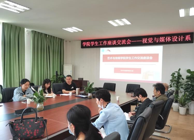 (通讯员 杨彬彬)4月21日下午2:30,米乐mile官方网站学生工作座谈交流会(视觉与媒体设计系)在艺媒楼1209会议室召开。学院副院长杨喆、党委副书记边建华、视觉与媒体设计系全体领导班子、班主任老师、学工组辅导员单湉艺和曾戈晖参加了座谈会。党委副书记边建华主持会议。