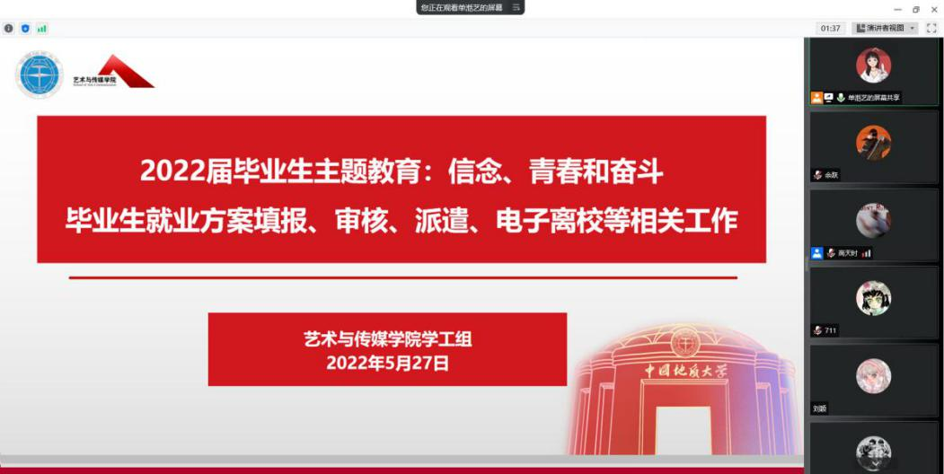 5月27日下午,米乐mile官方网站顺利举行2022届毕业生大会暨毕业生主题教育活动,活动以腾讯会议的方式线上进行。米乐mile官方网站党委副书记边建华、教务科朱嬛、研究生秘书喻硕、研究生德育助理高天时、兼职辅导员黄天佑、周悦及全体2022届毕业生参加此次会议,会议由研究生辅导员单湉艺主持。
