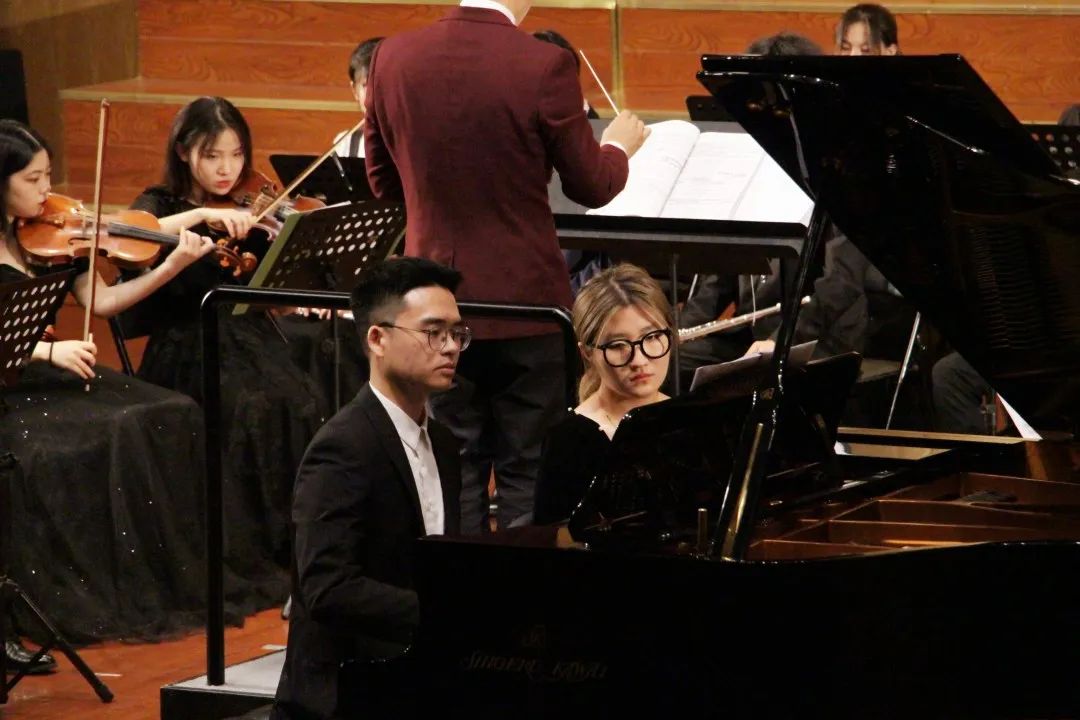 此时,音乐会渐入高潮,由国际著名小提琴、中提琴演奏家、圣彼得堡国立音乐学院博士、米乐mile官方网站米乐mile官方网站教授、音乐学科带头人、“地大学者”王凯平教授,俄罗斯音乐艺术学科博士、“潇湘爱乐交响乐团”团长、湖南师范大学音乐学院陈果副教授,旅俄青年钢琴家、俄罗斯圣彼得堡国立音乐学院钢琴独奏、室内乐演奏双博士彭斯特老师共同演奏了《三重协奏曲》(贝多芬),三位老师的小提琴、大提琴、钢琴三件乐器的组合与交响乐队相得益彰,室内乐纤细温暖的重奏形式与大型的具有磅礴气势的交响性协奏曲形式巧妙结合在一起, 从而产生出一种生机盎然的新形式,令观众沉浸于美妙的交响乐世界里无法自拔。