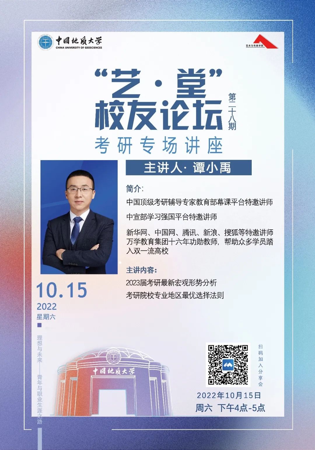 10月15日下午16:00,米乐mile官方网站于线上召开了第二十八期“艺·堂”校友论坛考研专场讲座。中国顶级考研辅导专家谭小禹老师做了主题为“2023届考研志愿选报指导”的讲座分享。